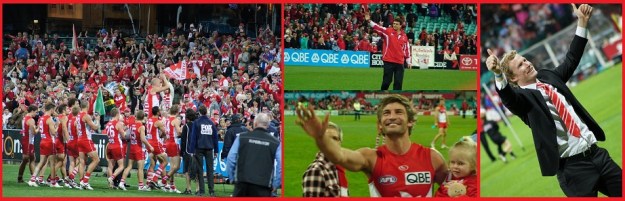 In 2009, after a tumultuous year at the Club, the Swans failed to play in the finals series for the first time since 2002. Since then, a number of the Club’s most respected players, as well as former player and coach, retired. The punters figured the Club would be in the “rebuilding” phase for a few years before they would make the finals again but ah-ha! They were wrong! The Swans returned to fine form in 2010 and despite an up-and-down 2011 season, the future of the most respected footy club in Australia is looking sparkly bright! They have proven that with great leadership, determination and strong coherence, even the underdogs can win. And tonight, I will be cheering on the mighty Swans once again as they attempt to break their Melbourne Cricket Ground (MCG) hoodoo in the 2011 semi-finals. Cheer! Cheer the Red and the White!