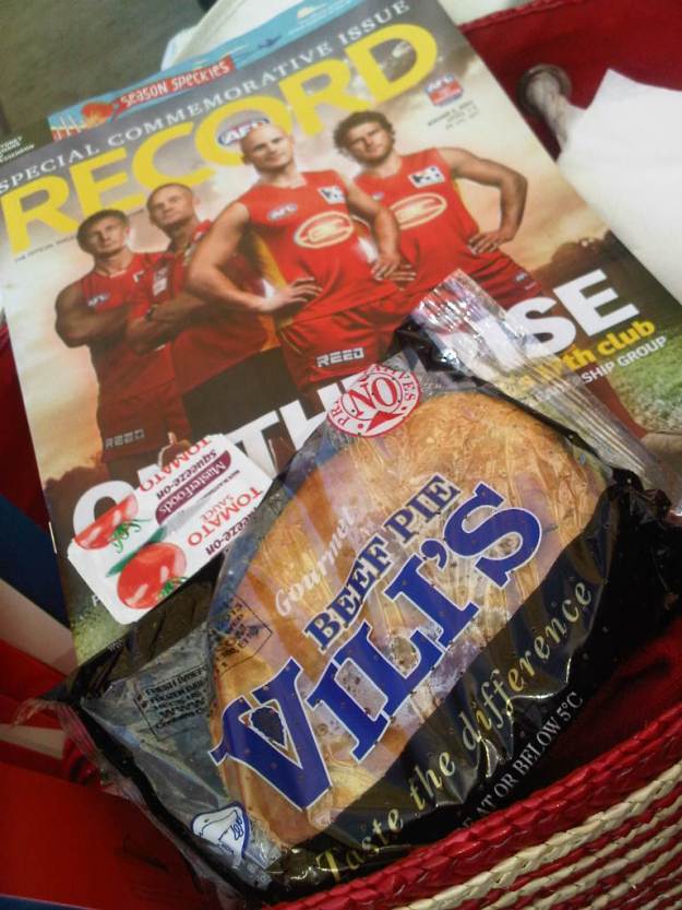 After that, I did not attend another football game until a few years ago – and finally I decided to become a fully fledged Sydney Swans supporter, becoming a season ticket-holder for the last few years. I’m there in my red and white Swans gear at every home game, cheering them on, singing the Club song as loudly as I can when the boys enter the grounds, and then hoping that I will get to sing it again at the end when they win. Some weeks, there is no denying, are harder to watch than others. I’ve come to call the Swans “the cardiac boys” because they give me a heart attack with how close they come to losing (and in some cases, winning). But they always give me a reason to come back and to have faith that they will give their best. Oh and of course, there’s the obligatory meat pie at the footy – can’t really have one without the other, can you?